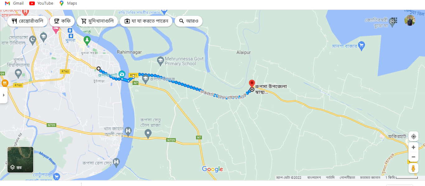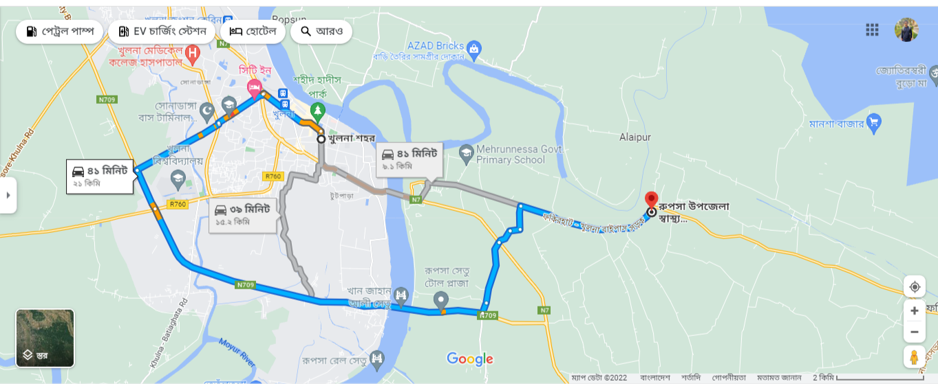 অন্যভাবে খুলনা শহর থেকে রিকশা, অটোভ্যান, টেম্পু যোগে রূপসা ঘাটে যেতে হবে। তারপর ট্রলারে করে নদী পার হতে হবে। নদী পার হয়ে আবার রিকশা, অটোভ্যান, টেম্পু যোগে রূপসা স্বাস্থ্য কমপ্লেক্স আসা যাবে।